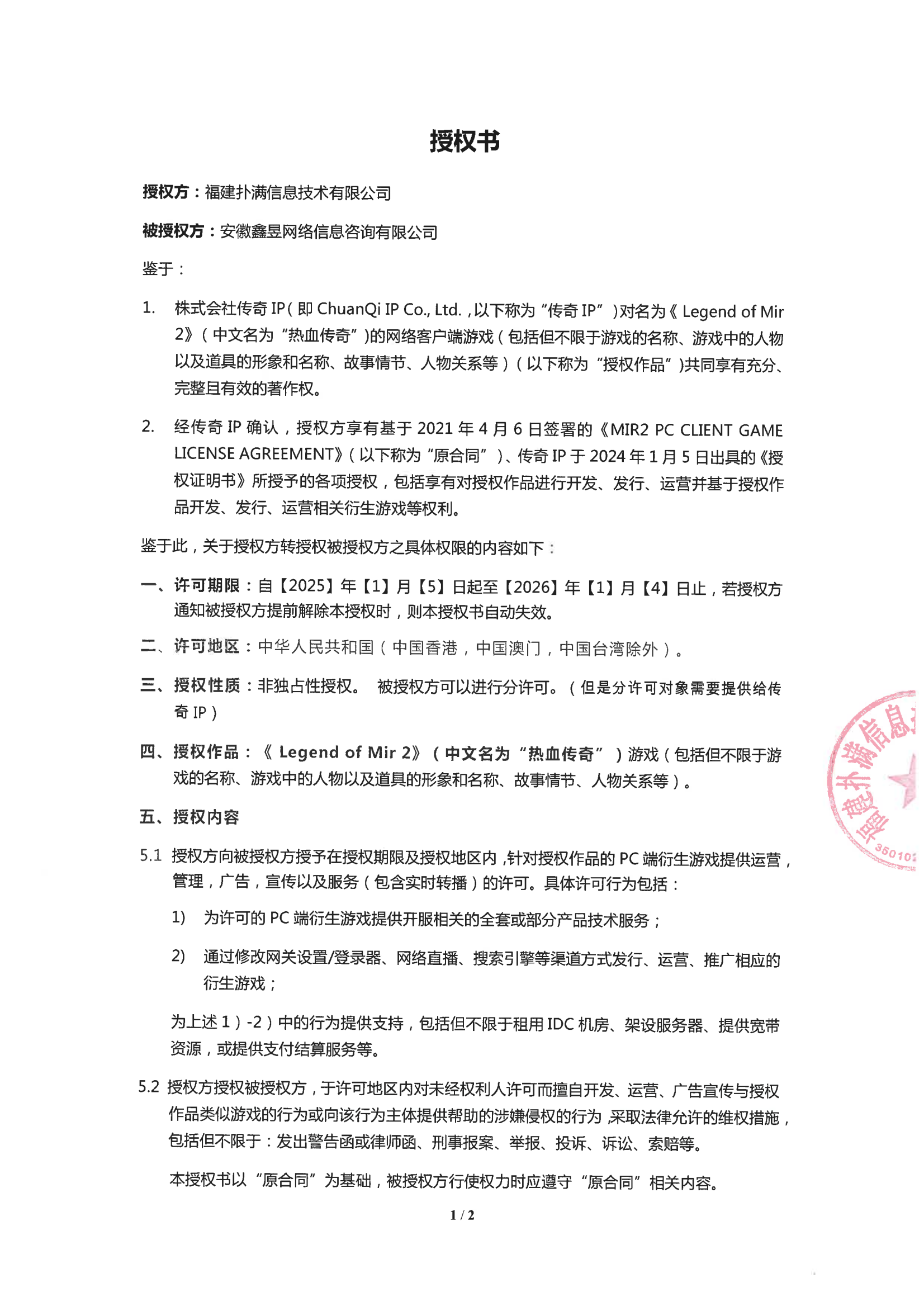 關于對《The Legend of Mir 2》(熱血傳奇) 衍生品游戲直播的嚴正聲明